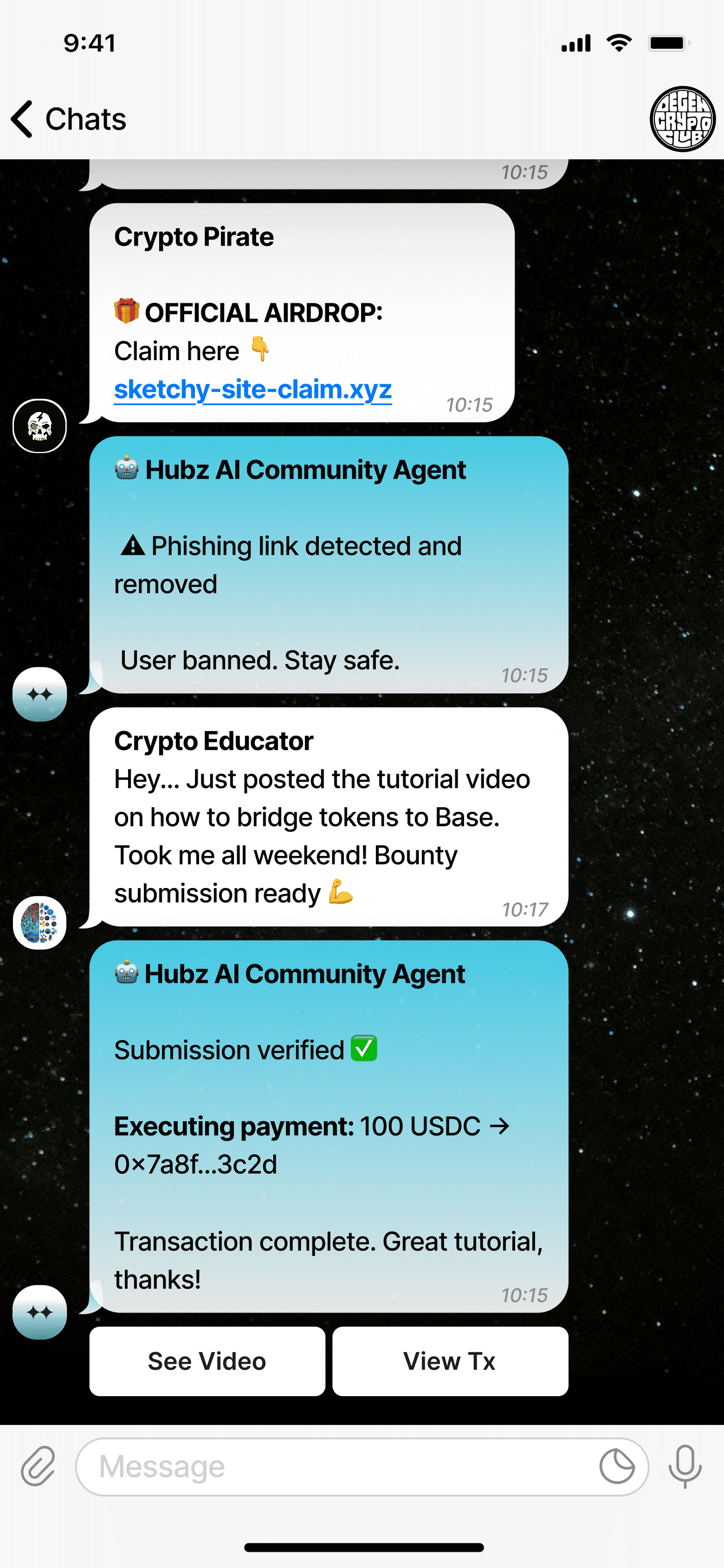 AI-powered moderation, member support, and Web3-aware tools built directly into Telegram.